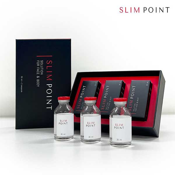SLIM POINT Face Ingredients Cyanocobalamin (Vitamin B12), Bromelain, Lecithin Application part Face Packing unit 5ml x 1 syringe Country of origin Republic of Korea Highly concentrated premium lipolytic with vitamin B12 and exclusive ingredients. Has a high lipolysis metabolism! Exclusive SLIM POINT composition: Cyanocobalamin (Vitamin B12) – activates lipid metabolism – converts carbohydrates and fats into energy – reduces edema by increasing blood flow Bromelain – proteinase in pineapple – lipolysis effect – relieves inflammation and heals wounds – reduces swelling and pain Lecithin – stimulates lipase activity – emulsifies and transports triglycerides in fat cells – destroys the walls of fat cells (detergent action) – dissolves bad cholesterol in the blood, such as waste and triglycerides clogged in blood vessels, and flushes them out of the body (Prevents unnecessary fat accumulation) Benefits of using SLIM POINT (Face): After the injection of SLIM POINT the fatty constituents in the fat cells change the composition of the storage form so that it can be used as an energy source, thereby reducing the number of fat cells as well as reducing the size of the fat cells to maximize the removal of excess fat. SLIM POINT breaks down fat cells into tiny particles and produces collagen for increased elasticity SLIM POINT can quickly release decomposed fat cells, facilitating lymph circulation, making them effective in reducing edema and removing cellulite. Who is SLIM POINT (Face) for? Fleshy face Face with reduced elasticity Asymmetrical face Thick double chin High cheekbones For those who have no effect from other contouring procedures